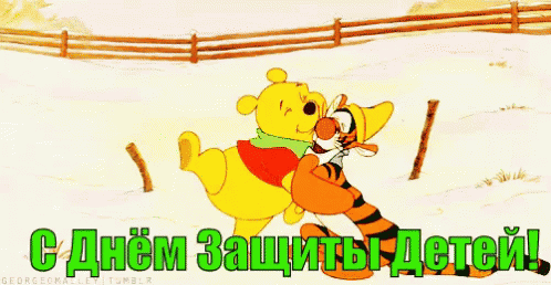 Winnie the Pooh and Tigger share a warm hug in the snow, celebrating Children's Day.