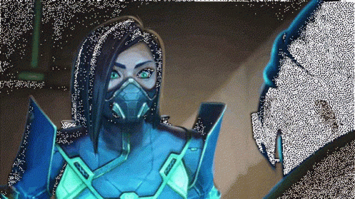 Viper from Valorant, a woman in a mask and armor, with the word 'COME' displayed.