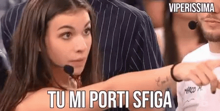 Viperissima from Amici18 points and exclaims 'Tu Mi Porti Sfiga' (You bring me bad luck) in a dramatic reaction.