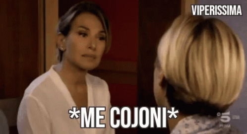 Barbara D'Urso and another woman react with the caption 'Me Cojoni' from the Italian show Viperissima.