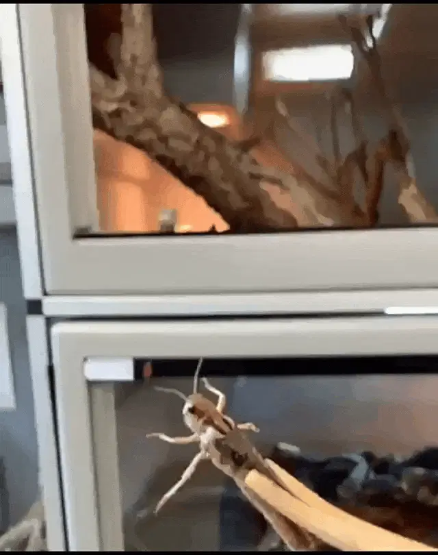 Pasquale Laricchia reacts on Viperissima Gfvip, exclaiming 'Like a gecko attached to the wall' with hands raised.