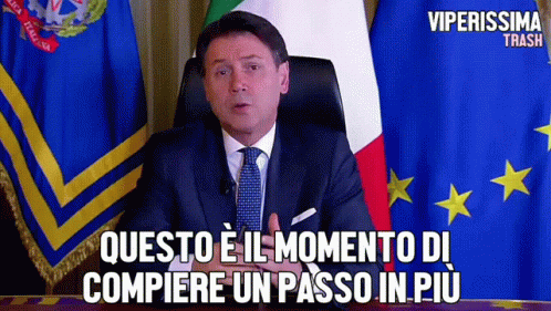Giuseppe Conte delivers a message: 'This is the moment to take one more step,' in a Viperissima Trash clip.
