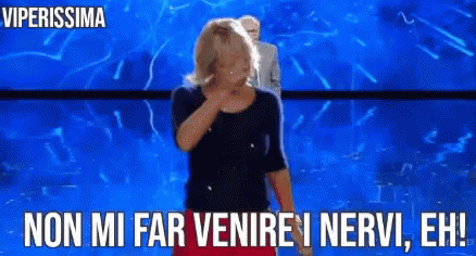 A woman from 'Viperissima' reacts intensely, saying 'Don't make me nervous, eh!' on a TV show stage.