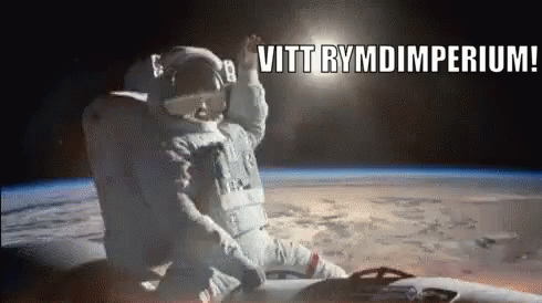 An astronaut in space with the text 'VITT RYMDIMPERIUM!' (White Space Empire!) and 'Svenskarär Vita'.