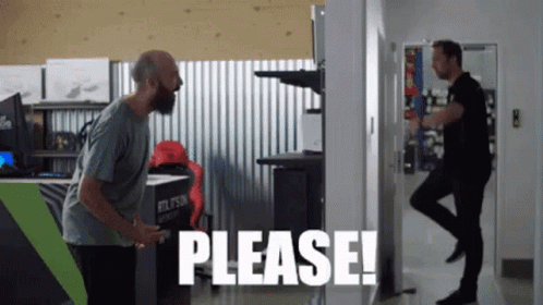 Rowan desperately pleads with Hamish in a funny Viva La Dirt League sketch, emphasizing his request with 'PLEASE!'.