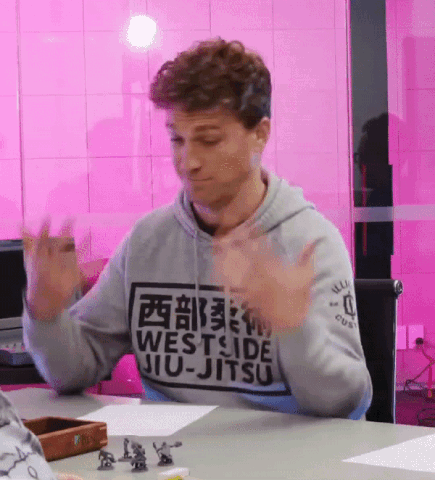 Vivaladirtleague's Ben gestures playfully with the caption 'Have you met me??' in a pink room.