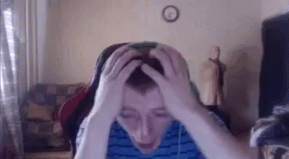 Vjlink reacts with intense rage, hands on his head and screaming, while wearing green headphones in a room.