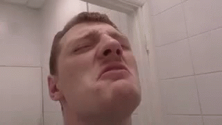 Vjlink makes a series of funny and exaggerated facial expressions in a bathroom.