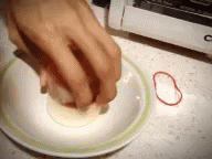 A hand carefully unmolds a delicious caramel flan dessert onto a white plate, revealing its smooth texture and rich sauce.