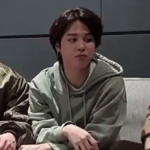 Jimin of BTS makes a cute pouty face while sitting on a couch, captured by Vminfruity P1xietae.