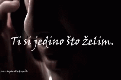 A dark close-up of a person's face with the text 'You are the only thing I want' (Ti si jedino što želim) overlaid, featuring Mina.