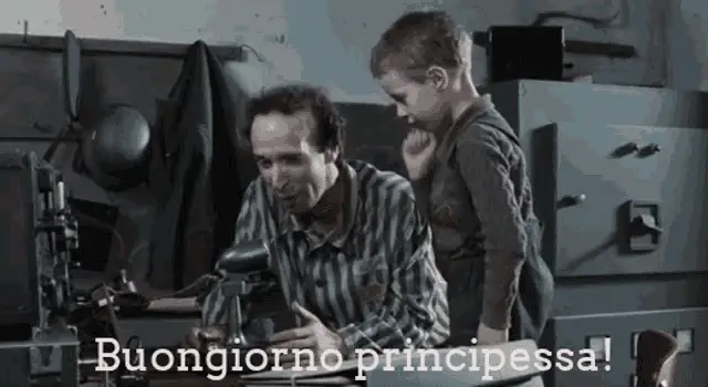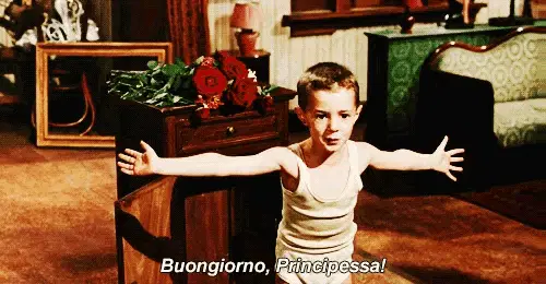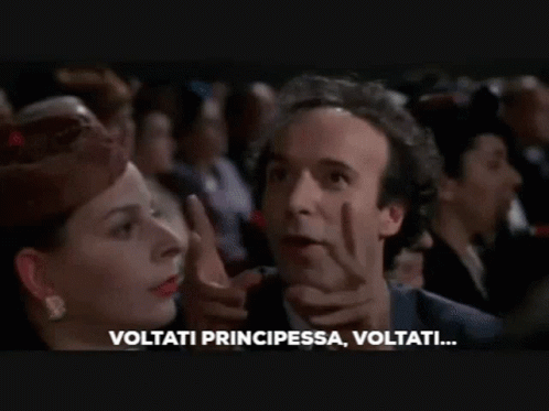 A man in a crowd urges a woman to turn around, calling her "Principessa" in a poignant moment.