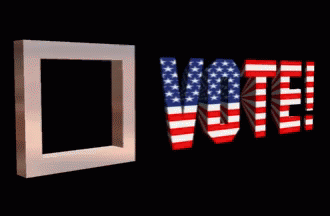 An animated golden check mark appears in a ballot box next to the patriotic 'VOTE!' text, encouraging participation in Primary Day.