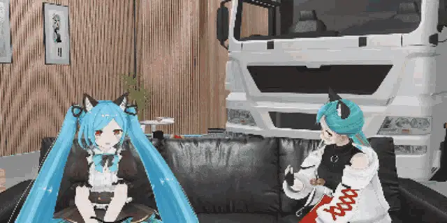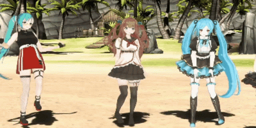 VTubers Kakyoin Chieri, Yamato Iori, and Kagura Suzu from Dot Live pose on a tropical beach.