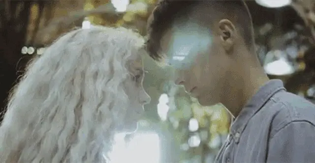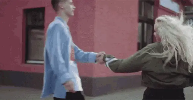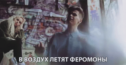 Robert Chernikin in 'Pheromones Fly Into The Air' music video, featuring a woman against a graffiti wall.