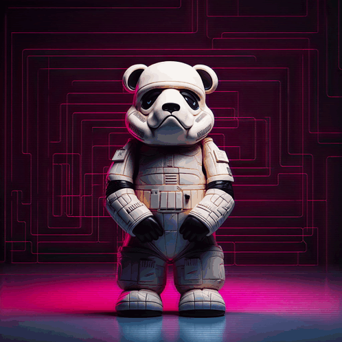 Vyd3n's unique psychedelic Stormtrooper bear, a trippy fusion of Star Wars and gummy bear aesthetics against a neon grid.