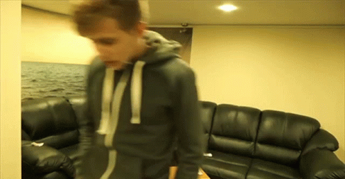 A man in a fur coat and sunglasses appears in a room, hinting at a dramatic 'get out' or 'fired' scenario.
