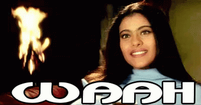 Bollywood actress Kajol's iconic surprised 'Waah' expression, likely from the film Kabhi Khushi Kabhie Gham (K3G).