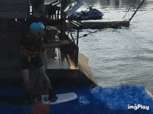 A wakeboarder attempts to start but immediately falls into the water, creating a large splash.
