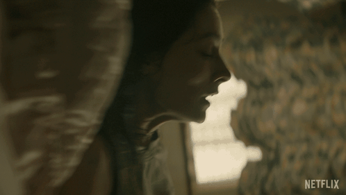 Siobhán Cullen, as Dove, wakes up startled and distressed from a bad dream, her face showing fear and confusion.
