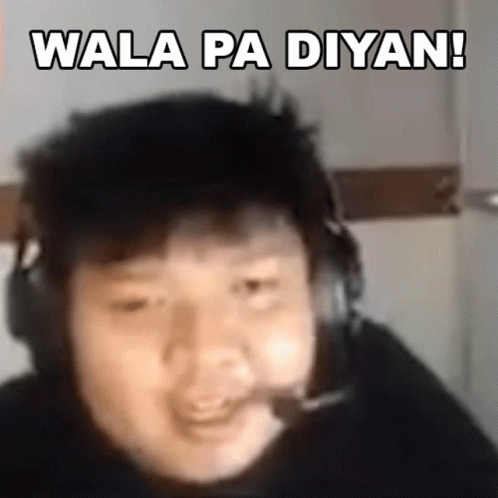 Trinhil, wearing headphones, reacts to something with the caption 'WALA PA DIYAN!' (Not yet there!).