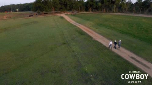 Zane Runyan, Ethan Treadwell, and Cuatro Houston walk along a dirt road at the Ultimate Cowboy Showdown.