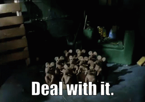 Stuffed mice from Wallace And Gromit's "A Grand Day Out" meme with "Deal with it" text.