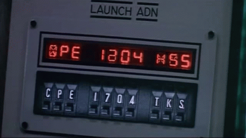 A digital display from the 1983 film Wargames shows changing launch codes, including FPE 1704 VZS.