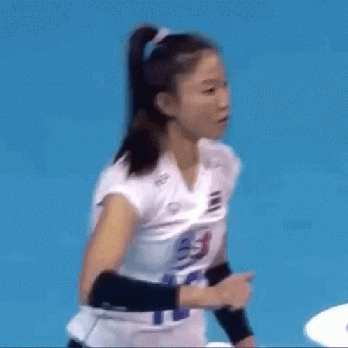 Nootsara13, a Thai volleyball player, makes a decisive gesture on the court during a Wariview match.