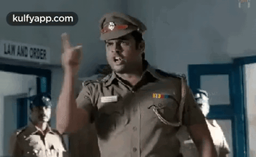 Madhavan, as a police officer, delivers a commanding and threatening warning in a police station.
