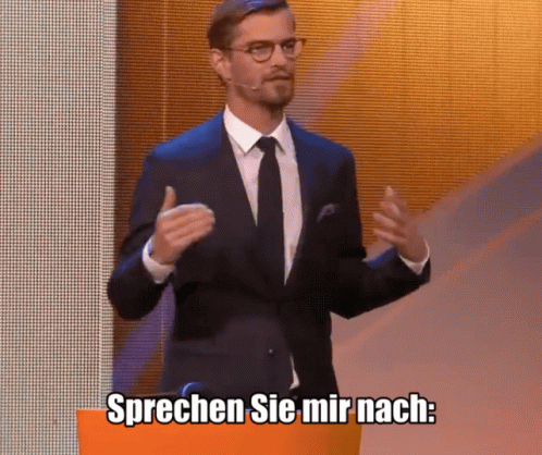 Joko Winterscheidt enthusiastically leads a crowd in chanting 'Euro, Euro, Euro!' during a speech.