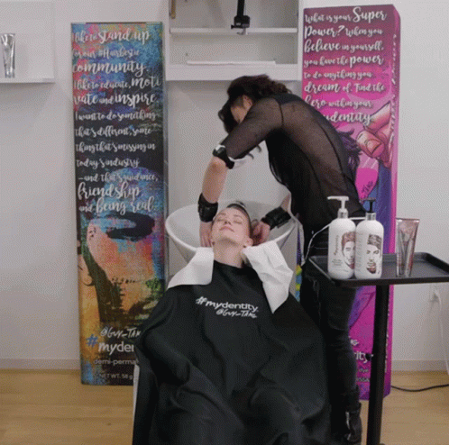 Guy Tang expertly washing a client's hair at a salon, demonstrating hair care techniques.