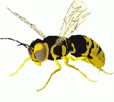 A black and yellow wasp is shown in a close-up shot against a plain white background.