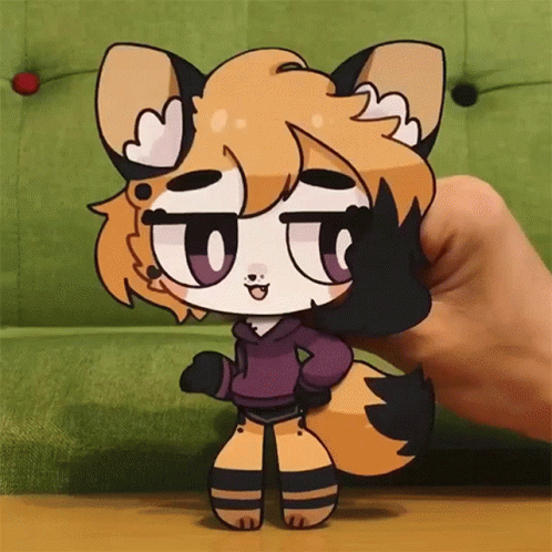 A hand holds an animated paper cutout of the character Wasu, a cheerful fox, dancing.