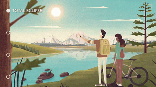 An illustration of a couple watching the total solar eclipse, turning day into night.