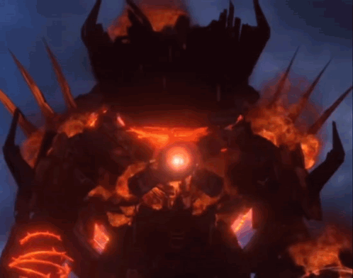 Astro Titan TV Man, the Watchman of Doom, a fiery monster with a crown and spikes.