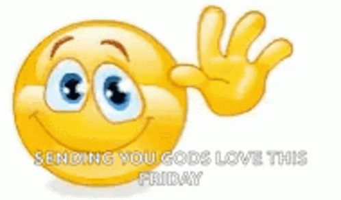 A cheerful waving emoji with the message 'SENDING YOU GODS LOVE THIS FRIDAY' for a blessed day.