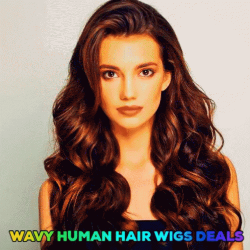 Discover amazing deals on wavy human hair wigs, featuring a woman with beautiful long wavy hair.