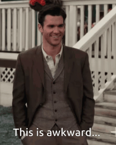 Nathan from When Calls The Heart says 'This is awkward...' while standing outside.