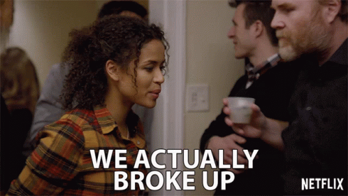 Sophie, played by Gugu Mbatha-Raw, tells a man at a party, "We actually broke up," in a scene from a Netflix production.