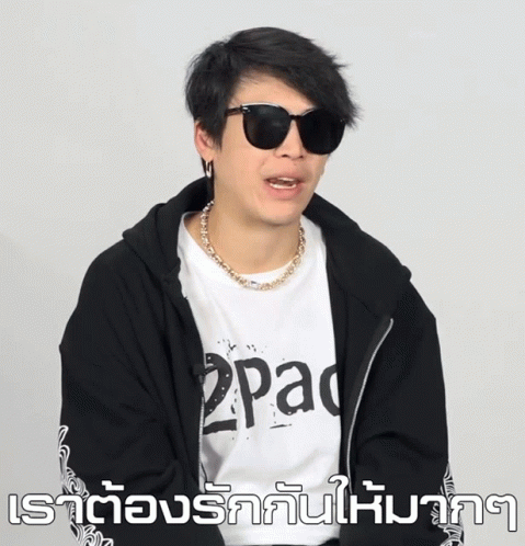Pokky, wearing sunglasses and a 2Pac shirt, shares a message: 'We must love each other very much.'
