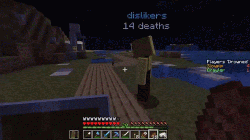 Minecraft player dislikers achieves the 'We Need To Go Deeper' advancement in the Nether, while Slowpip and Draver are listed as drowned.