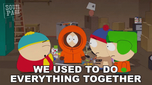 Eric Cartman, Stan Marsh, Kyle Broflovski, and Kenny McCormick reflect on their past in South Park.