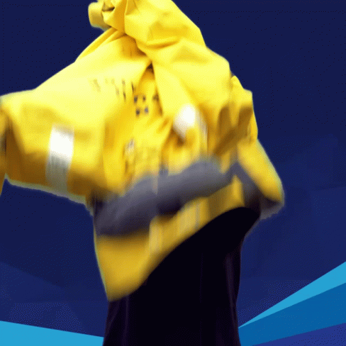 Lilian Mercier puts on a yellow sailing jacket, preparing for rain and foul weather conditions.