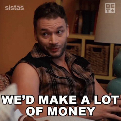 Preston (Trinity Whiteside) from Sistas says, 'We'd make a lot of money,' with an expressive look.