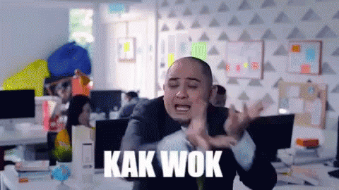 A man in a suit makes exaggerated funny faces with the captions "KAK WOK" and "WEI!" appearing on screen.