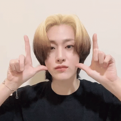 Wei Yongha, a young man with blonde and brown hair, poses for the camera, making a cute expression.