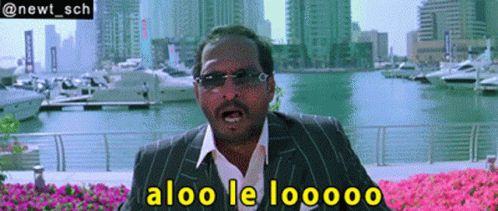Nana Patekar from 'Welcome' shouts 'Aloo Le Lo' and 'Kaande Le Lo' while pushing a vegetable cart.