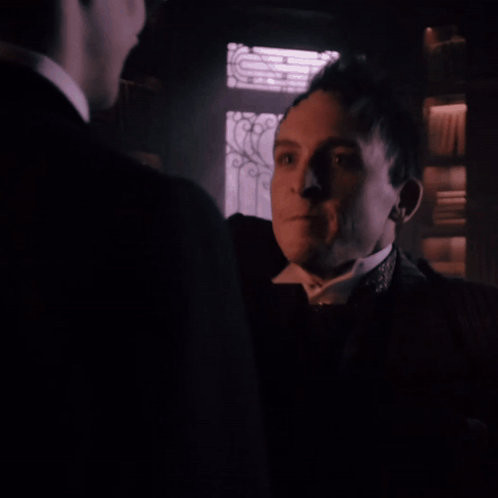 Oswald Cobblepot (The Penguin) hugs Connor, with 'welcome home, nico' text overlay, in an emotional reunion.