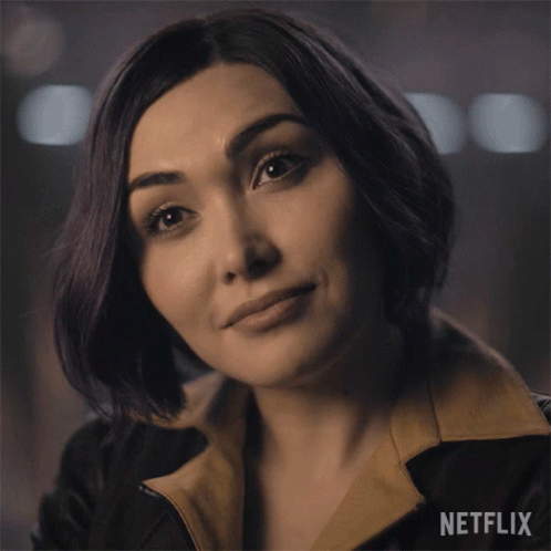 Faye Valentine (Daniella Pineda) from Netflix's Cowboy Bebop gives a smug, knowing grin.